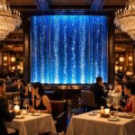 ウィン・ラスベガスの高級レストランでは、ウォーターインテリアを効果的に活用し、水の流れる壁面が食事空間と通路を優雅に区切っています。この演出により、オープンフロアでありながらプライベート感のある空間を実現し、VIP顧客から高い評価を得ています。